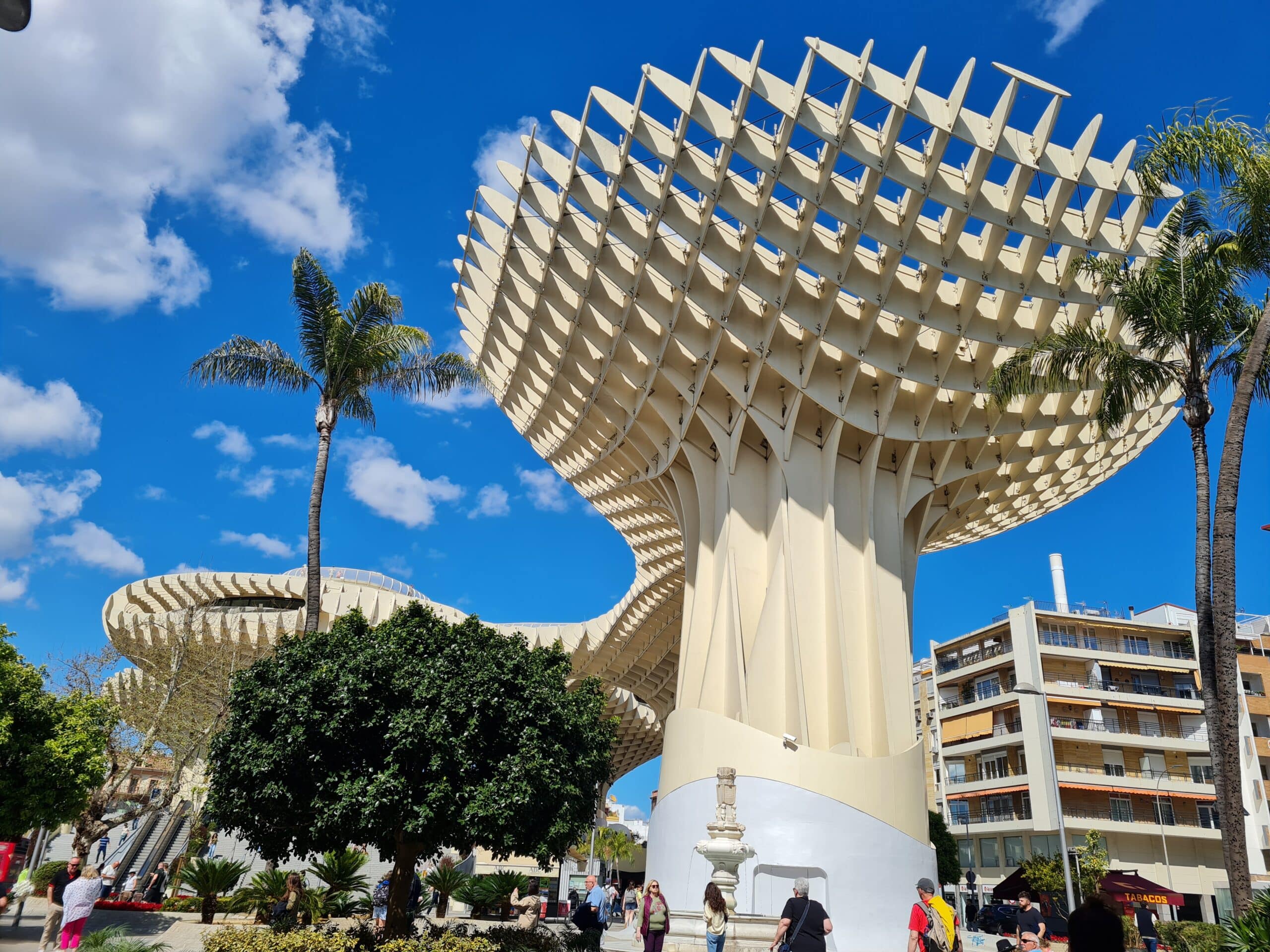 – Puis, nous sommes allés jusqu’à METROPOL PARASOL, zone de marché avec son architecture moderne en forme de champignons géants et sur le chemin nous avons vu les colonnes d’Hercule, lequel aurait fondé la ville de Séville, sa légende a été racontée.