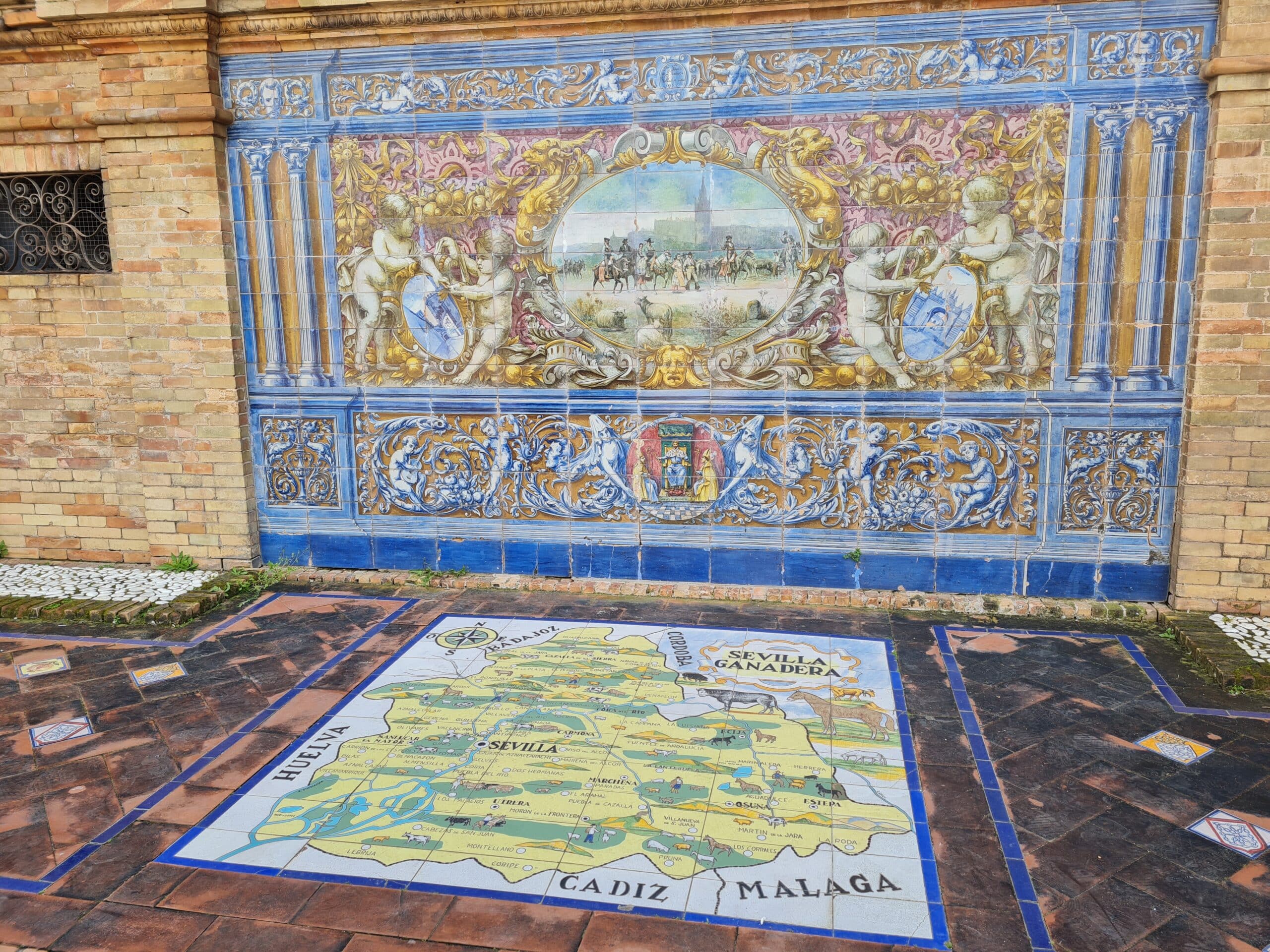 – Après midi plus historique avec des guides qui nous ont expliqué les constructions de la Torre de Oro, des palais: Reales Alcazares, de la cathédrale et sa Giralda. On a ainsi mesuré l’empreinte laissée par les maures dans cette région, reparlé de la découverte et de Christophe Colomb, bien-sûr.