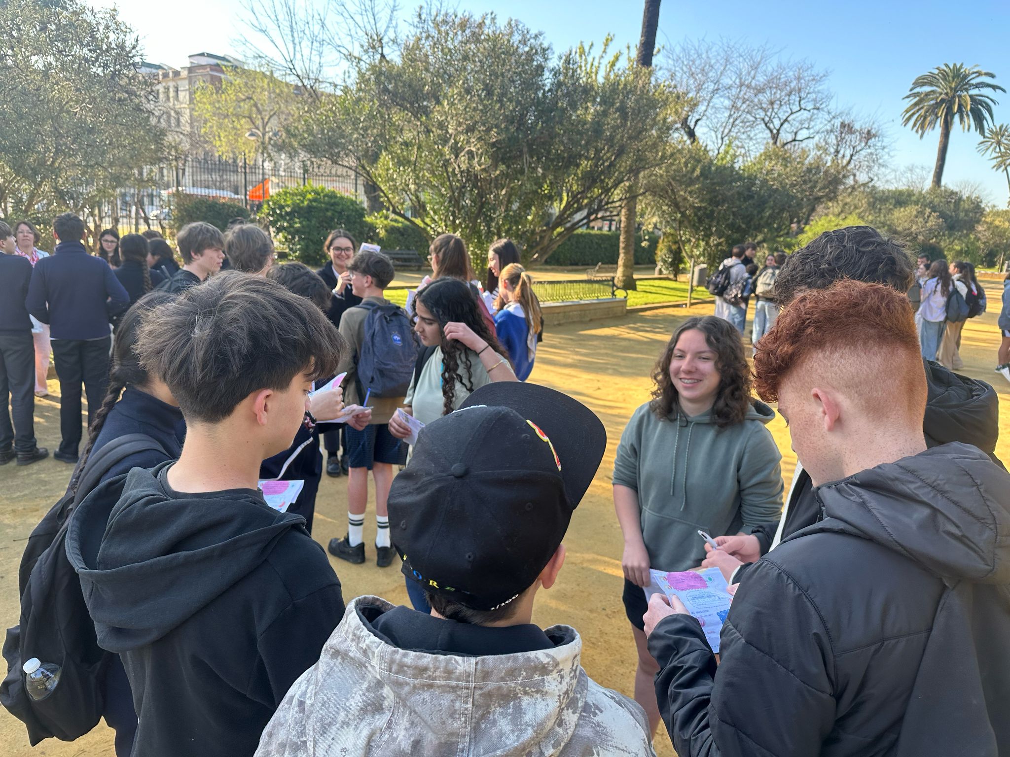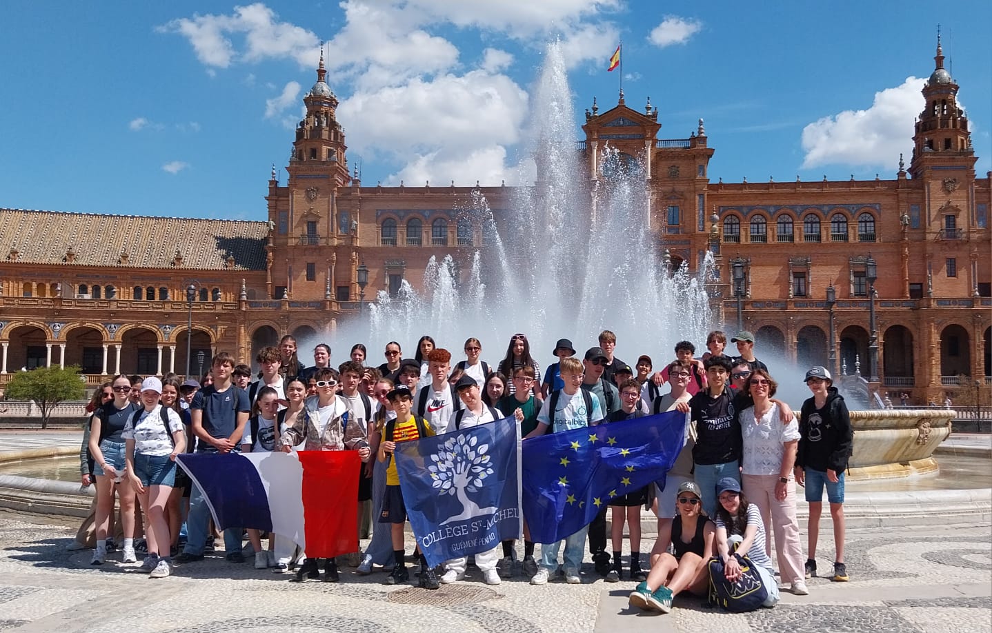 53 élèves et leurs 4 professeurs ont pris le chemin de l’Andalousie, avec d’abord des heures de bus, une première halte à Madrid, puis encore 6,7 heures pour atteindre Séville !